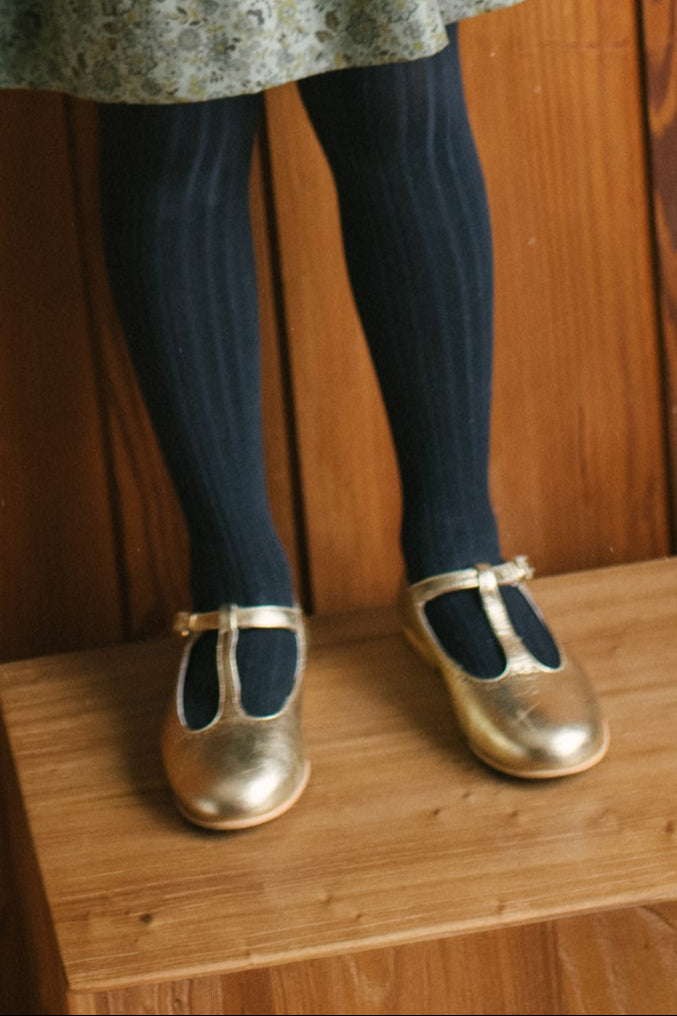 Dziewczęce, złote baleriny Mary Jane z paskiem