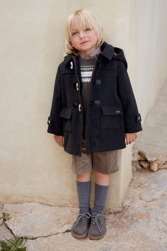 Płaszcz z drewnianymi guzikami