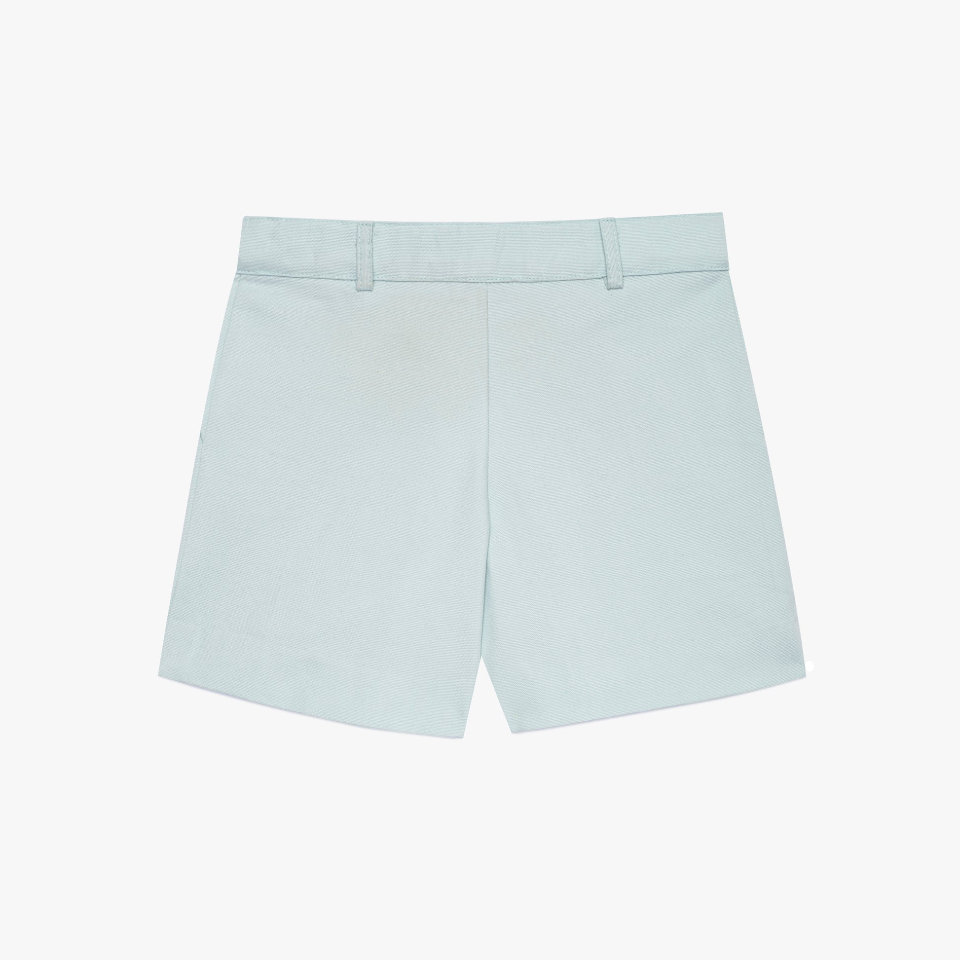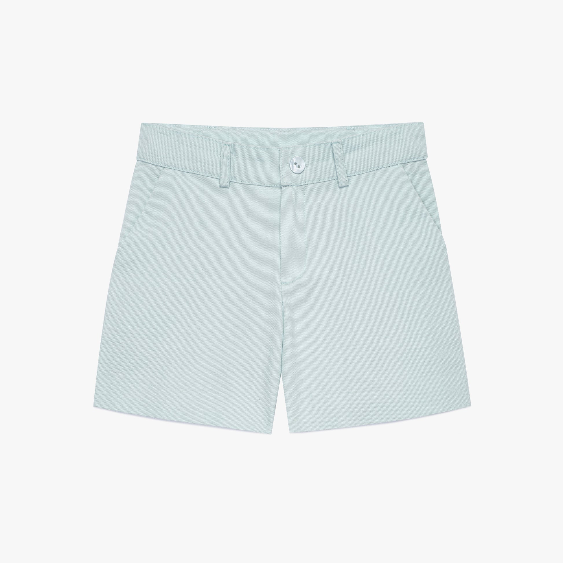 The sky blue chino shorts are the epitome of casual comfort and timeless style for your little boy. They add elegance and chic to his wardrobe in a universal and timeless way. They have a standard cut without rolled hems, a zip and button fastening and practical belt loops.