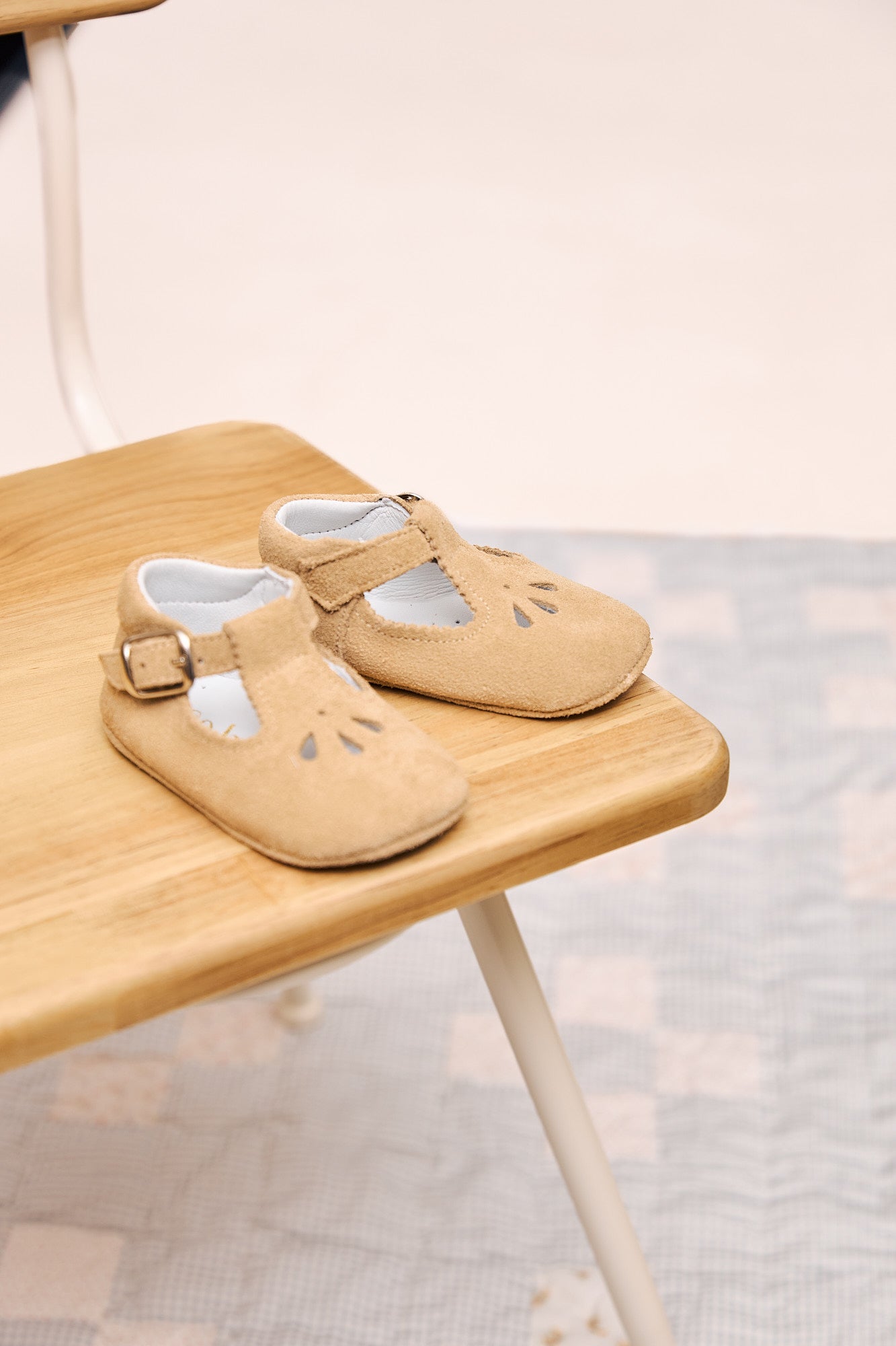 Beżowe zamszowe buciki niemowlęce mary jane