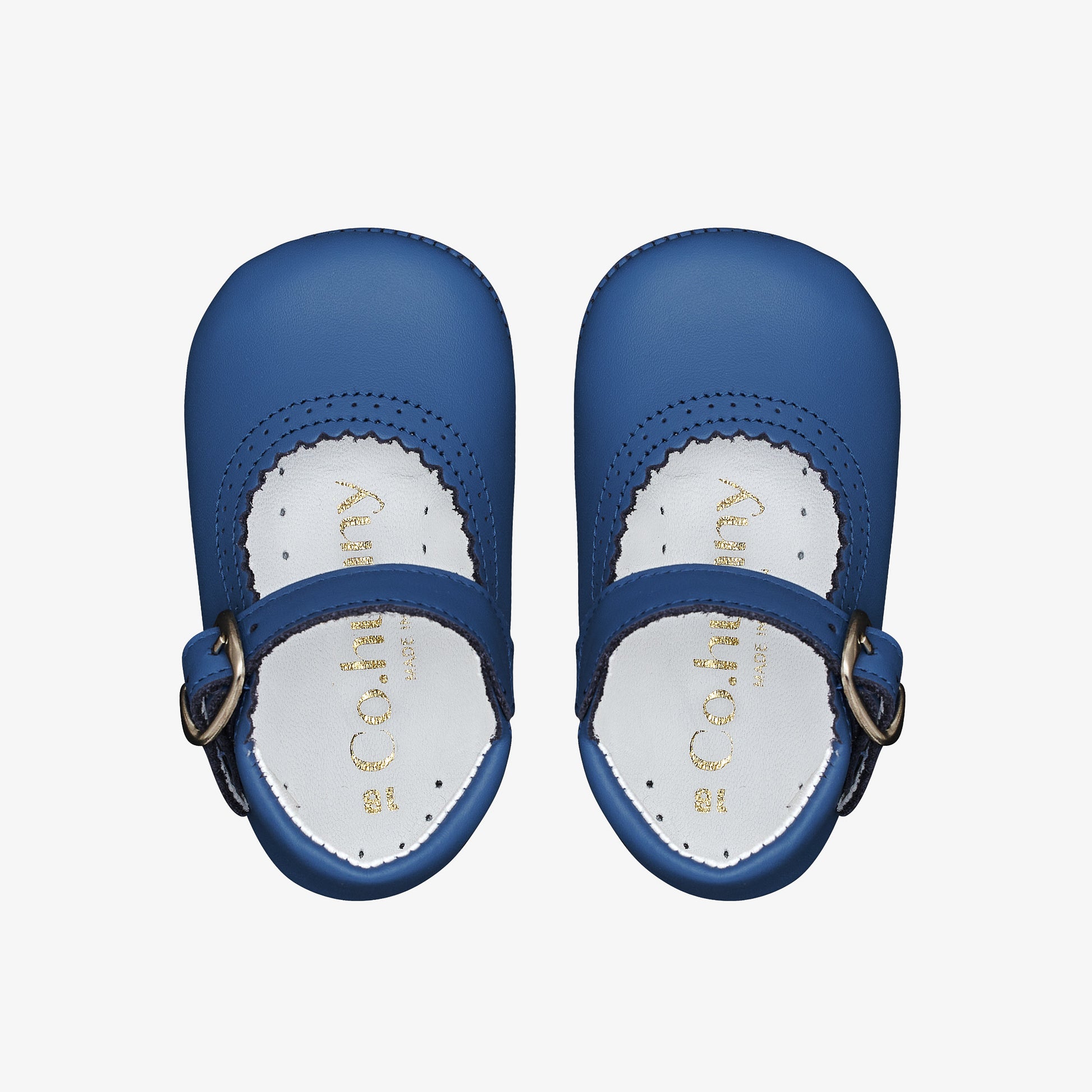 Niebieskie buty mary jane dla niemowląt są doskonałe dla maluszków, które nie potrafią jeszcze chodzić. Wykonane przez rzemieślników z najwyższej jakości skóry Nappa, są lekkie i posiadają elastyczną skórzaną podeszwę, zapewniając dodatkowy komfort. Buty są w całości wyścielane skórą i posiadają pasek z klamrą. To doskonały prezent dla nowonarodzonego malucha (lub samego siebie;).