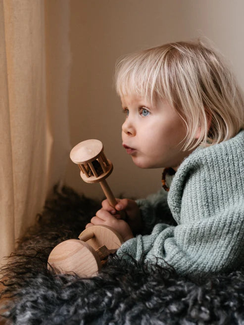 Drewniana Grzechotka Lelek marki Wooden Story to wyjątkowa zabawka, która łączy tradycyjny rzemieślniczy design z funkcję edukacyjną. Jej kształt przywodzi na myśl dawne narzędzia koronczarek. Inspirowana głosami polskich ptaków, ma subtelny dźwięk, który jest nie tylko przyjemny dla ucha, ale także idealnie wprowadza dzieci w świat instrumentów perkusyjnych. Jest to zabawka, która pomaga rozwijać słuch muzyczny i poczucie rytmu, co może być świetnym wprowadzeniem do zabawy z muzyką.