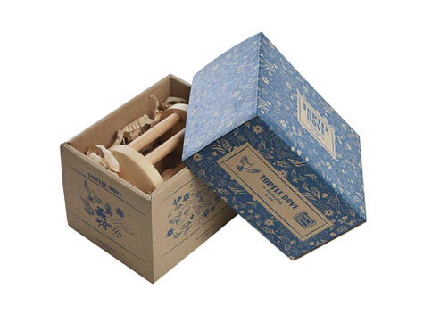 Drewniana Grzechotka Turkawka marki Wooden Story to zabawka inspirowana dźwiękami polskich ptaków, która rozwesela dzieci subtelnym dźwiękiem, przyjemnym dla ucha. Jest to prosta zabawka, idealna do toczenia po ziemi lub obracania w dłoniach, co wspiera rozwój motoryki małej. Dzięki połączeniu dwóch gatunków drewna, Turkawka wydaje unikalny dźwięk, który zachęca do zabawy, np. w podążanie za dźwiękiem zamkniętymi oczami.