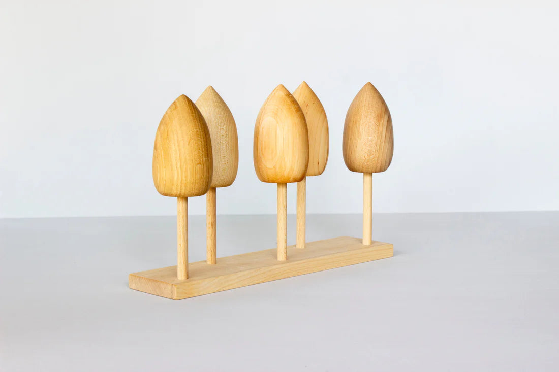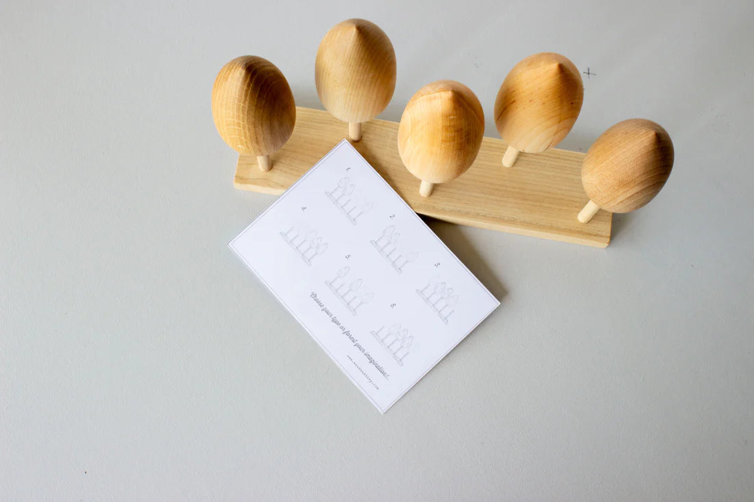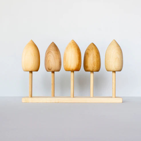 Drewniana Układanka Gatunki Drzew marki Wooden Story to edukacyjna zabawka, która pozwala dzieciom odkrywać różnorodność gatunków drzew. Zabawa rozwija zmysły, angażując dziecko w dostrzeganie różnic w fakturach, kolorach oraz strukturach drewna. Dziecko poznaje 5 gatunków drzew: dąb, klon, olcha, akacja i buk, z których każdy charakteryzuje się wyjątkowym słojem, kolorem oraz twardością drewna. Układanka pobudza wyobraźnię malucha, pozwalając na tworzenie własnych kompozycji leśnych, np. układając elementy od najciemniejszego do najjaśniejszego drewna. Dodatkowo, zabawa w zgadywanie, które drzewa mogą rosnąć w danym lesie, zachęca do nauki podczas spacerów i łączenia teorii z rzeczywistością.