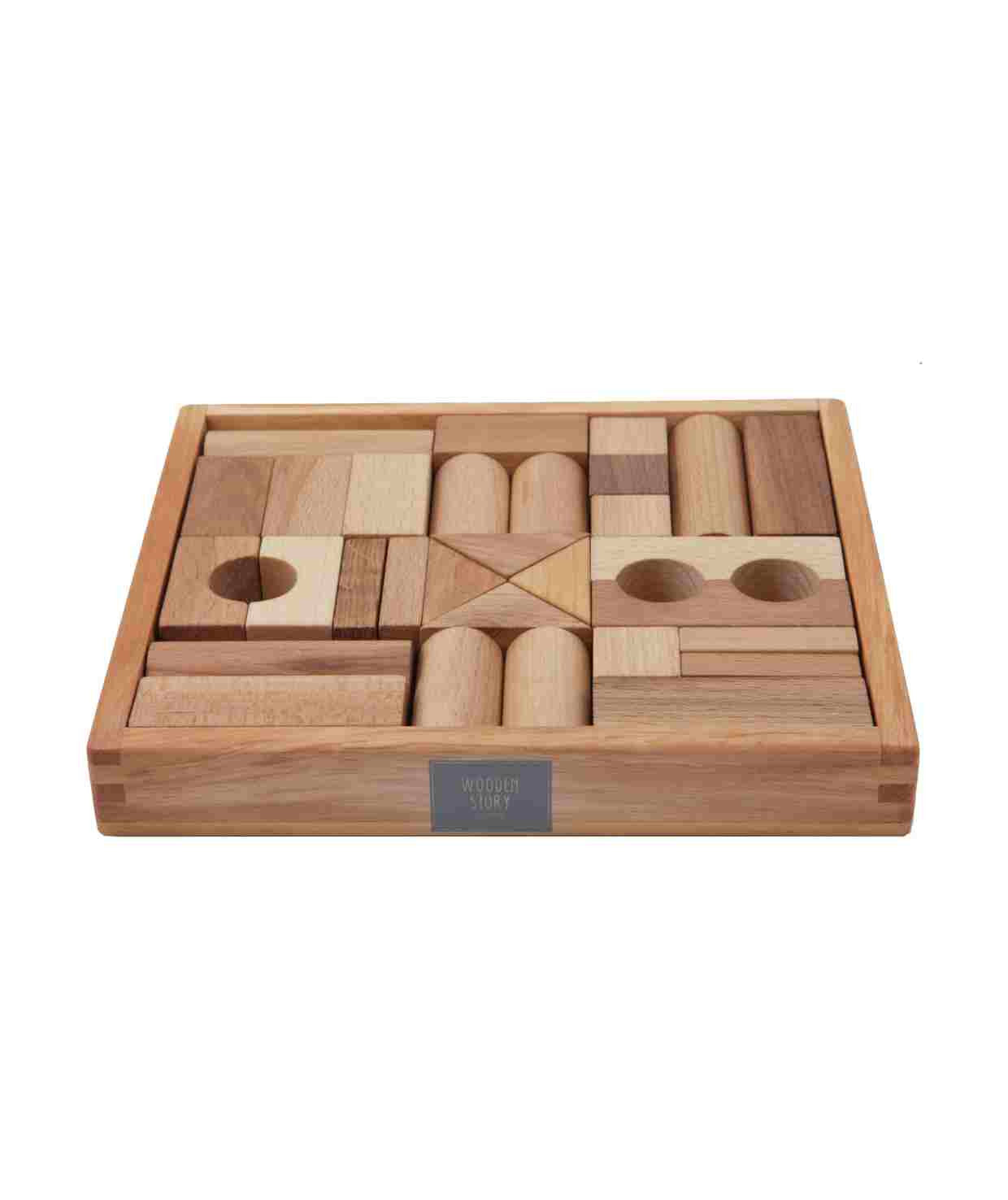 Delikatne w dotyku i pachnące lasem drewniane klocki marki Wooden Story to idealna propozycja dla dzieci, które uwielbiają kreatywną zabawę. Zestaw składa się z 30 elementów, które zapewniają wciągającą i rozwijającą rozrywkę, tworząc fantazyjne budowle. Dzięki nim dzieci rozwijają wyobraźnię, pobudzają kreatywność oraz doskonalą koordynację ruchową.