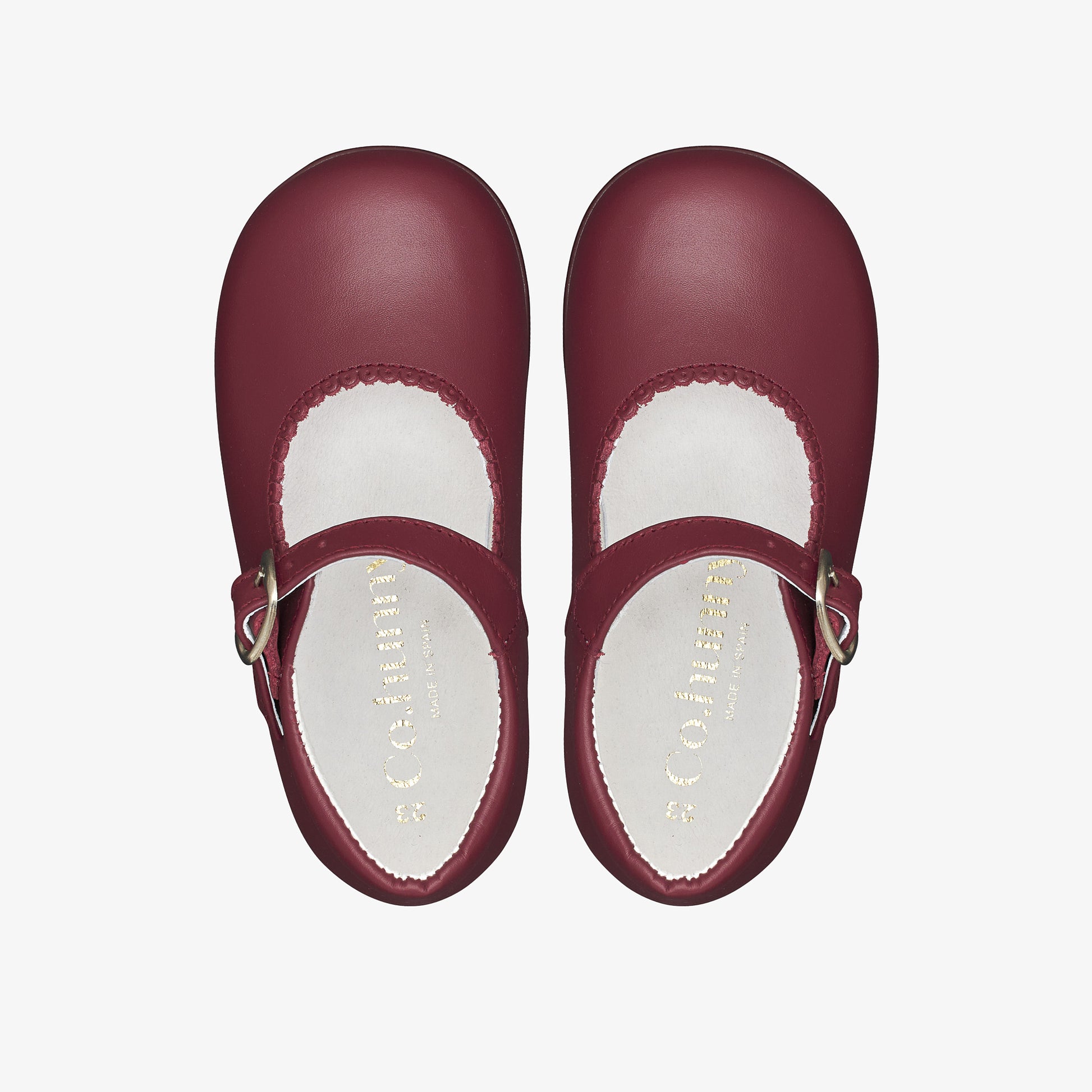 Te tradycyjne półbuty typu Mary Jane dla małych dzieci zostały wykonane z pięknej, miękkiej skóry w odcieniu bordo. Wyściełane podbicie oraz pasek z zapięciem na napy gwarantują wygodę i pewność na stopach Twojego maluszka. To idealne obuwie dla Twoich małych dziewczynek na nadchodzący jesienny sezon, ale i wielkie zimowe okazje jak święta i karnawał.