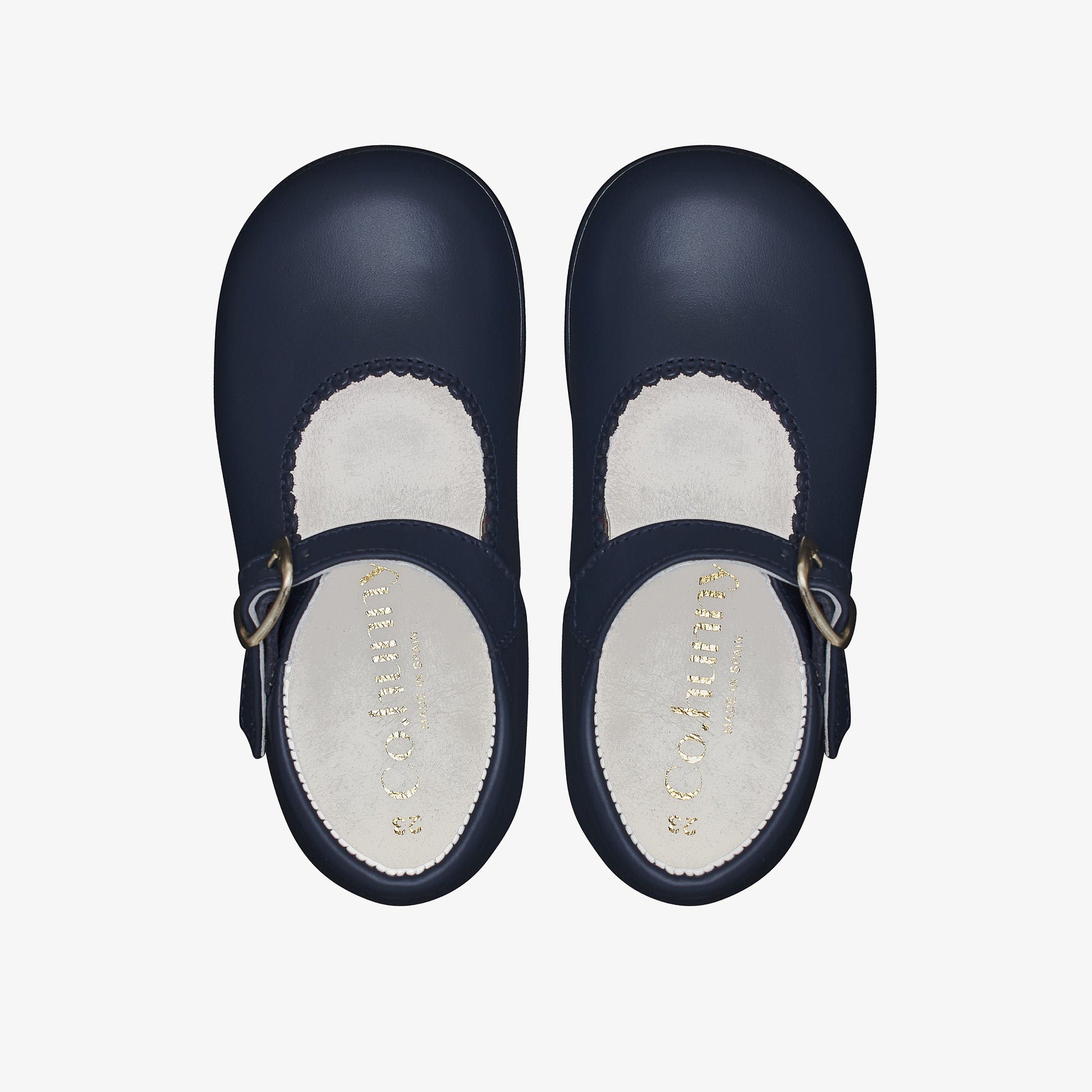 Te tradycyjne półbuty typu Mary Jane dla małych dzieci zostały wykonane z pięknej, miękkiej skóry w odcieniu granatu. Wyściełane podbicie oraz pasek z zapięciem na napy gwarantują wygodę i pewność na stopach Twojego maluszka. To idealne obuwie dla Twoich małych dziewczynek na nadchodzący jesienny sezon, ale i wielkie zimowe okazje jak święta i karnawał.