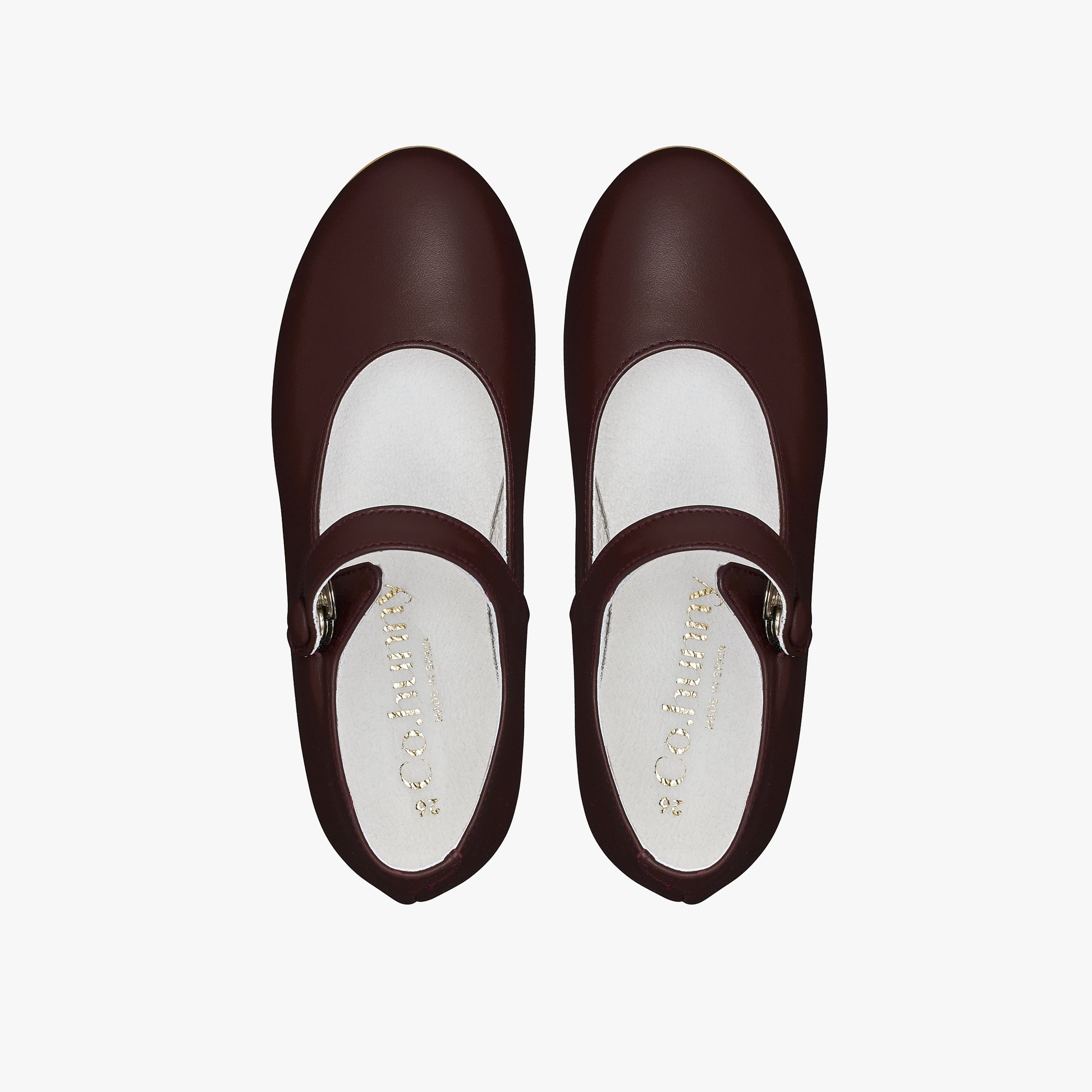 Te tradycyjne półbuty typu Mary Jane dla dzieci zostały wykonane z pięknej, miękkiej skóry w odcieniu bordowo-brązowym przypominającym kasztany. Wyściełane podbicie oraz pasek z zapięciem na napy gwarantują wygodę i pewność na stopach Twojego maluszka. To idealne obuwie dla Twoich małych dziewczynek na nadchodzący jesienny sezon, ale i wielkie zimowe okazje jak święta i karnawał.