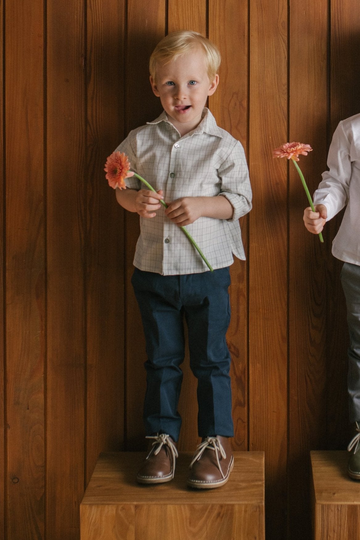 Chłopięca koszula w kratkę. Ta koszula dla chłopca z długim rękawem sprawdzi się idealnie na święta. Jest bardzo miękka i wygodna, wykonana ze 100% bawełny flanelowej. Koszula w kratkę w kolorze biało-grafitowym.