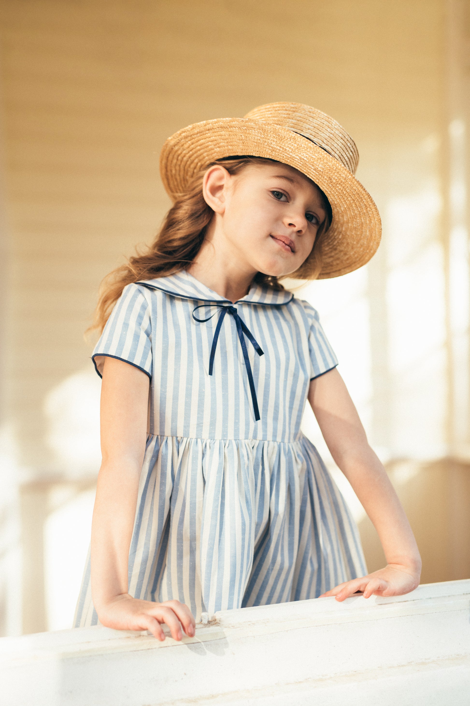 Stonowana elegancja dla Twojej małej damy! Ta klasyczna sukieneczka w biało-niebieskie paski z charakterystycznym, marynarskim kołnierzykiem i uroczą granatową kokardką to idealny wybór na każdą okazję. Wykonana z najwyższej jakości materiałów, ta sukienka zapewni wygodę i styl Twojej dziewczynce. Dodatkowo, subtelne akcenty w postaci granatowej kokardki oraz granatowych lamówek przy rękawach i na kołnierzyku nadają całości uroku i klasy. Idealna propozycja dla małych wielbicielek morskich klimatów!