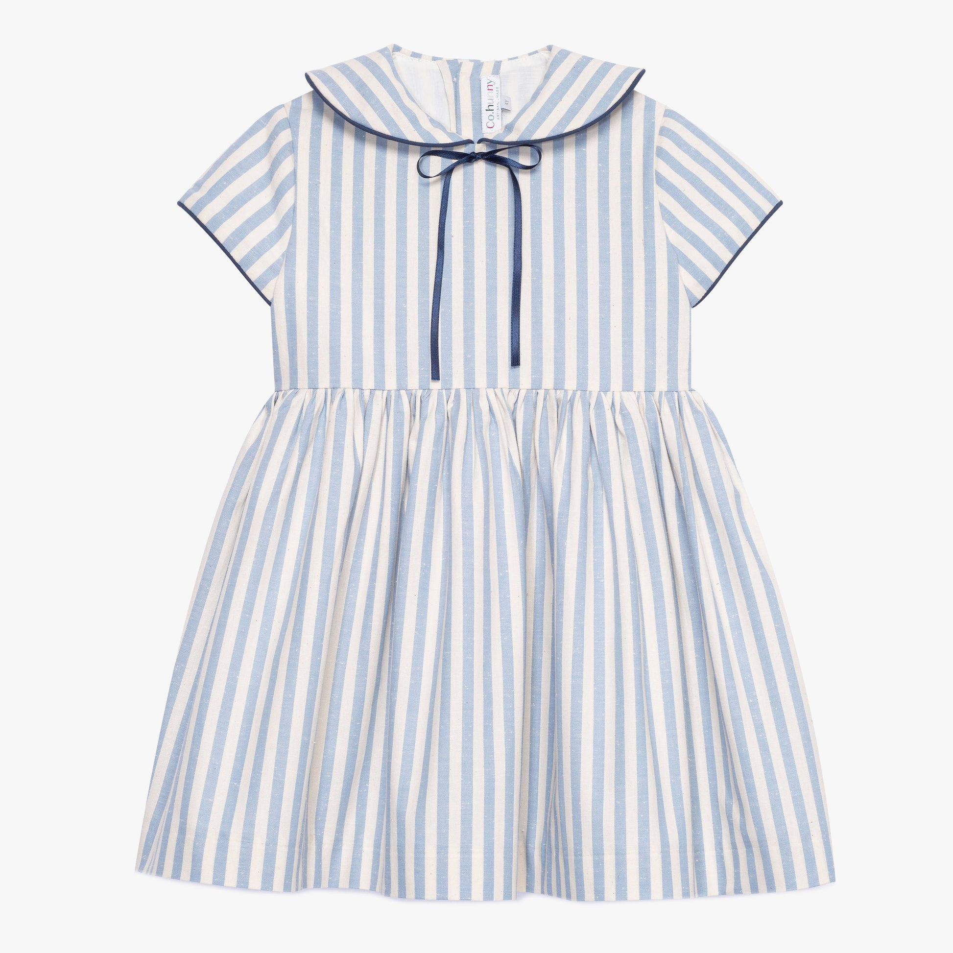 Marynarska sukienka z kołnierzykiem w biało-niebieskie paski