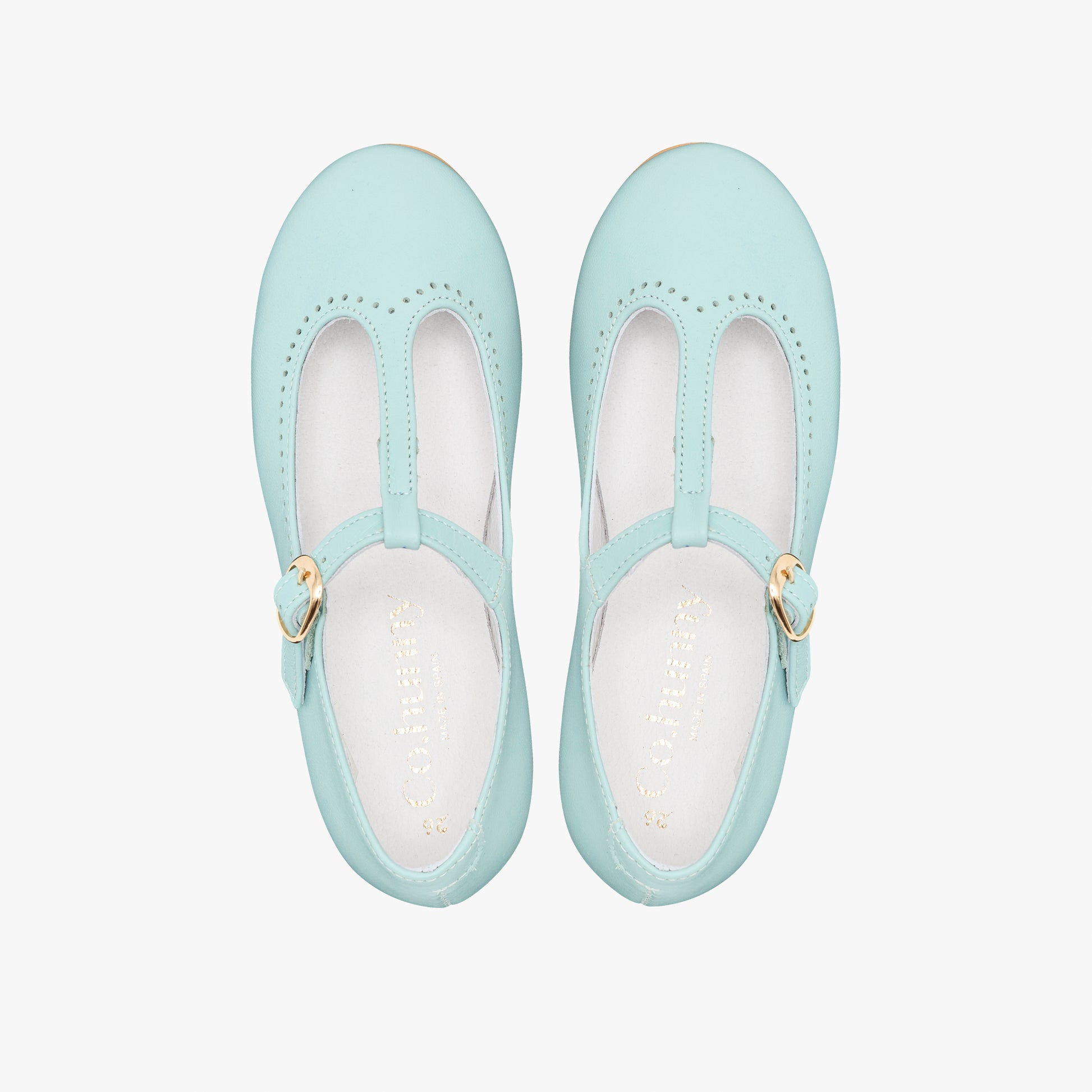 Baleriny Mary Jane z paskiem to klasyczny styl butów dla dzieci, który pojawił się w latach 20. XX wieku. Te buty cechują się charakterystycznym paskiem w kształcie litery "T" przechodzącym przez środek stopy i zazwyczaj mają klamrę lub zapięcie na rzep lub guzik, które pomagają utrzymać buty na nodze.
