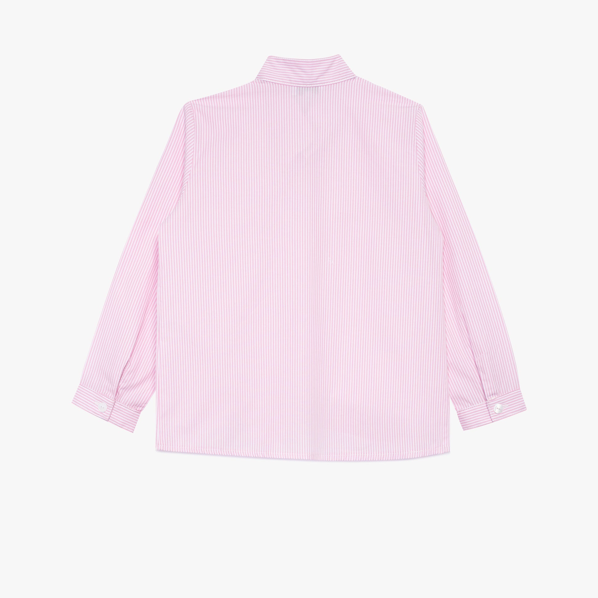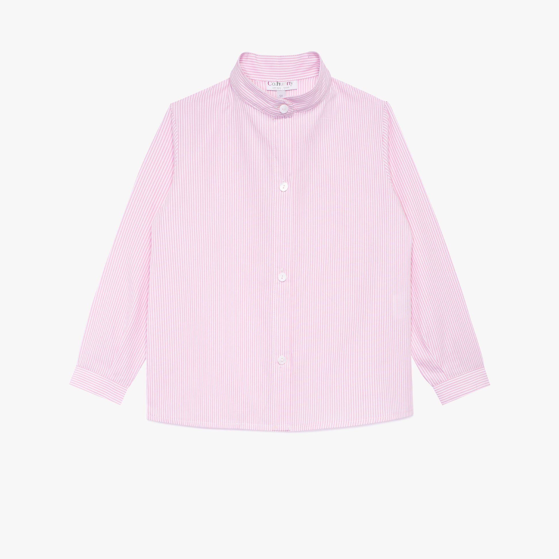 Różowa koszula chłopięca w delikatne paski z długim rękawem i kołnierzykiem mao
