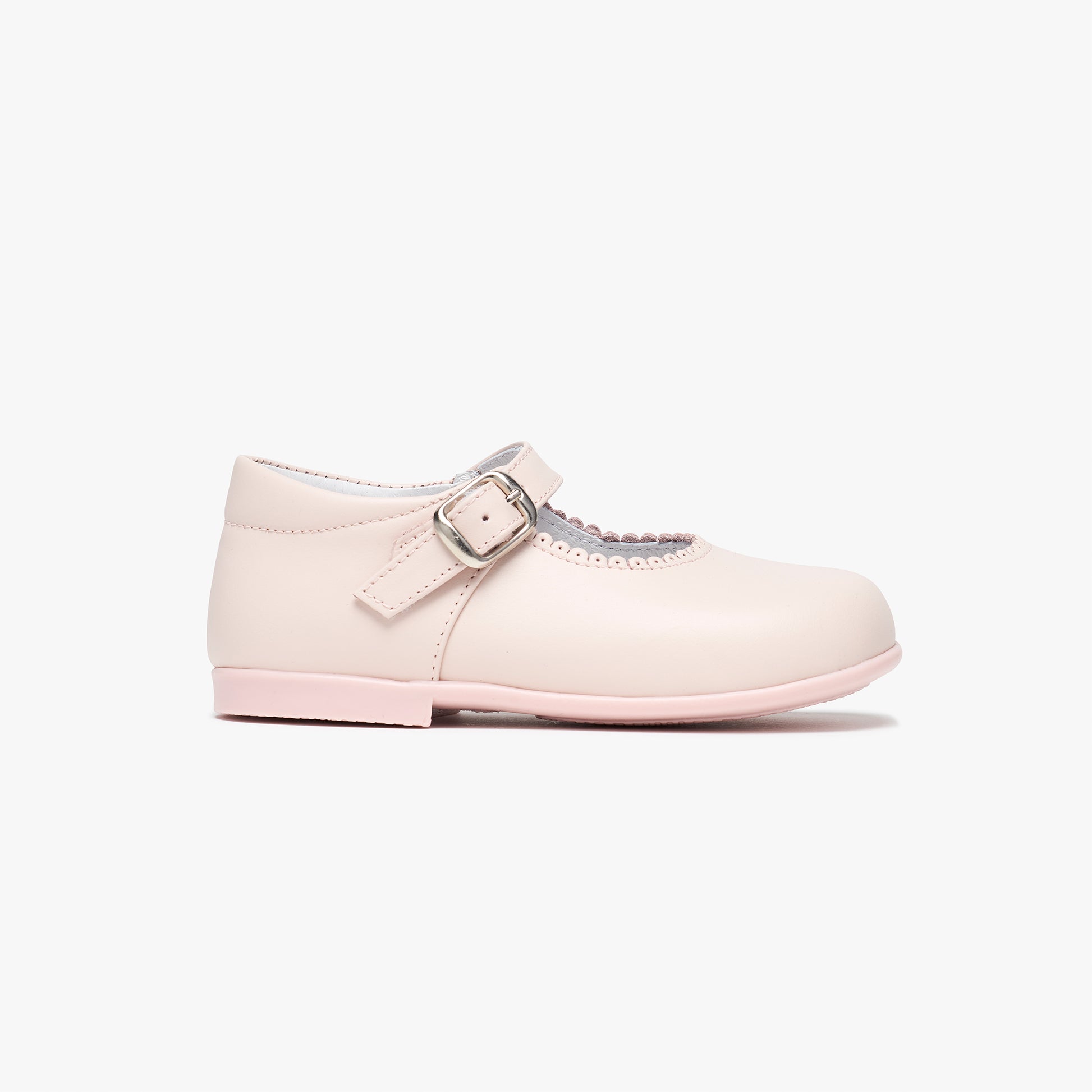 Te tradycyjne półbuty typu Mary Jane dla małych dzieci zostały wykonane z pięknej, miękkiej skóry w kolorze jasnoróżowym. Wyściełane podbicie oraz pasek z zapięciem na napy gwarantują wygodę i pewność na stopach Twojego maluszka. To idealne obuwie dla Twoich małych dziewczynek na nadchodzący jesienny sezon, ale i wielkie zimowe okazje jak święta i karnawał.
