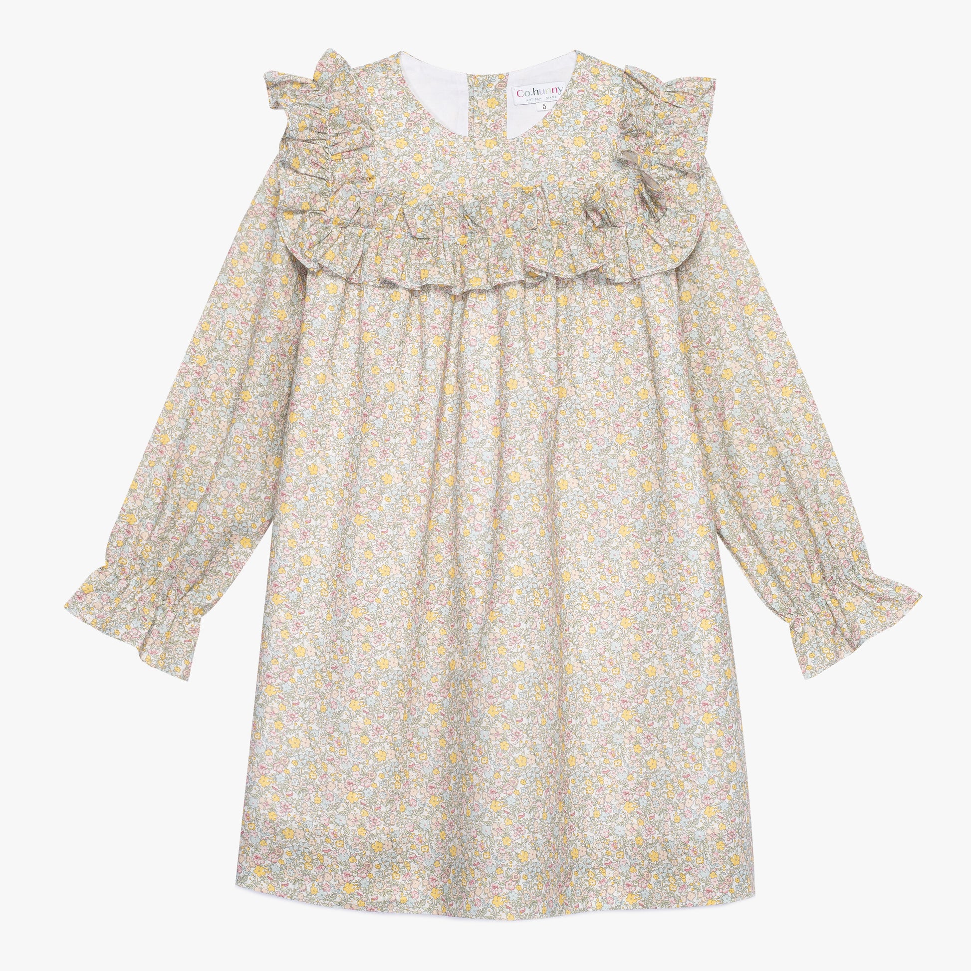 Odkryj naszą elegancką sukienkę dla dziewczynki, która przenosi w romantyczny świat klasyki i elegancji. Ta unikatowa sukienka w drobne żółto-niebieskie kwiatuszki zachwyca subtelnym urokiem i wyrafinowanym stylem. Długie rękawy i pięknie ozdobiona falbanka przy kołnierzu dodają sukience ponadczasowego charakteru, idealnie sprawdzając się na specjalne okazje.