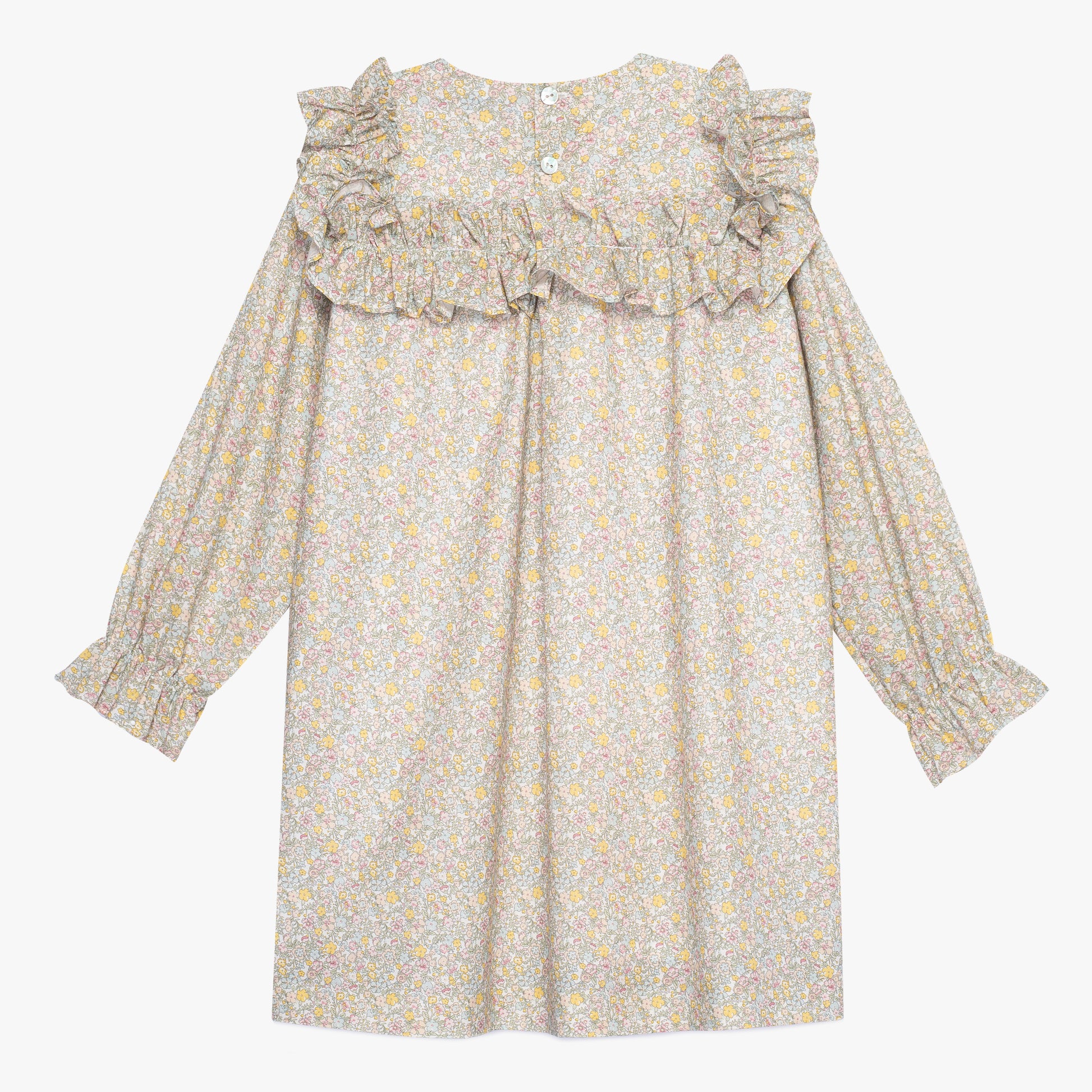 Sukienka, zapinana z tyłu na perłowe guziki, wyróżnia się luźnym fasonem, który zapewnia pełną swobodę ruchów – doskonałą zarówno na romantyczne spacery, jak i aktywną zabawę. Wykonana z najwyższej jakości czystej bawełny, z miękką podszewką, oferuje komfort, trwałość i elegancję.
