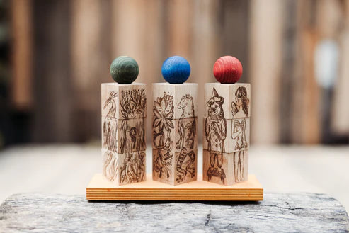 Witaj w krainie snów! Układanka Obracanka Dreamland marki Wooden Story to wyjątkowa podróż do świata wyobraźni, gdzie nic nie jest niemożliwe. Zestaw zawiera trzy unikalne serie klocków z misternie grawerowanymi postaciami inspirowanymi Commedia dell’arte, Secret Garden i Magic Forest. Dziecko może układać klasyczne postacie, ale… dlaczego nie stworzyć własnych, magicznych istot? Może żabie wyrosną skrzydła, rusałka zamieni się w akrobatę, a smok zyska kocie łapki? Możliwości są nieograniczone! To zabawka, która rozwija kreatywność, pobudza zmysły i doskonali zdolności manualne, a przy tym dostarcza mnóstwo radości.